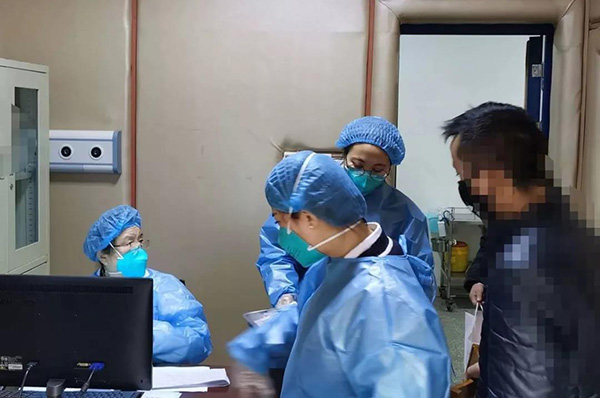 郑淑芳(左一)正在发热门诊接诊筛查