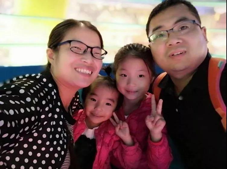 照片是夫妻二人与两个女儿的合照,一家四口生活快乐甜蜜。