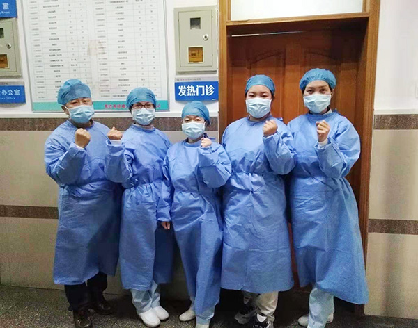 在她的号召和带领下,四院急诊科的全体人员在疫情面前,无一退缩,不讲条件,不计回报,毫无怨言地投入到发热门诊和隔离病房的工作中,不吃不喝,不去厕所,每天连续工作8小时。