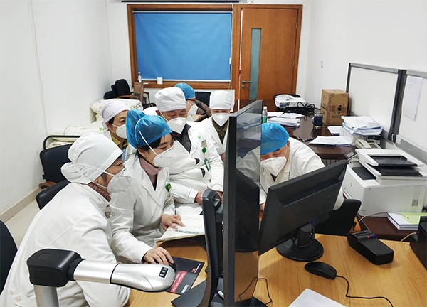 他们全天24小时待命,每天睡眠不足4小时,与其他专家组成员一起现场指导各病区开展疑似患者的病情诊断、分析和确诊工作。他们频繁往返于医院门诊多学科远程会诊中心,一天100多个电话,近百余份会诊单,门诊、病房、病案讨论会,每天的影像片子近百份……