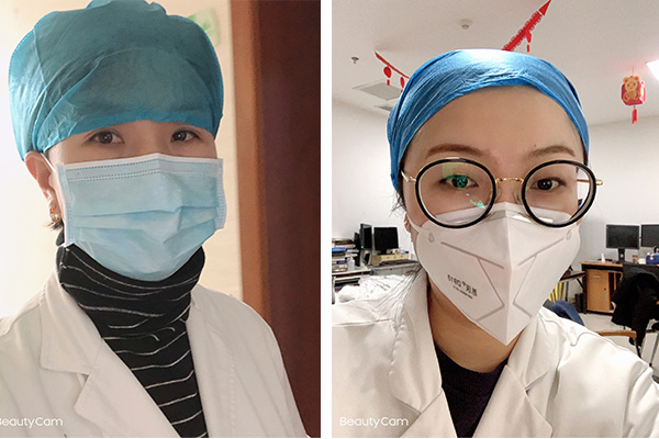 她们既要考虑到病人的安全(这些病人中一部分是影像可以确诊的新冠患者),又要考虑在防护措施有限的情况下,如何节约防护服,经常一个班下来好几个小时不吃不喝不上厕所。她们不停协调全院需要做检查的病人,尽可能高效完成检查,尽快高效给做完检查的病人及时出具报告,缩短病人在医院的等候时间,尽量减少病人在院内交叉感染的风险。连续多日的24小时值守,让她们美丽的脸庞有些憔悴,明亮的眼睛也布满血丝,但是他俩的战胜疫情的眼神却是分外坚定。