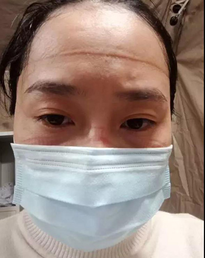 沉重的防护下,要完成精准的标本采集,挑战的是这些护士们的身体极限:穿戴上防护服一个小时就开始憋气、呼吸困难、全身汗透,感觉身上压着重物;四层的手套把整个手勒得紧紧,手掌稍微握起就非常疼,往往工作起来也忘了痛感,当下班时脱下手套、面屏时才发现自己的额头、鼻子、手指都已是破皮、伤痕累累。