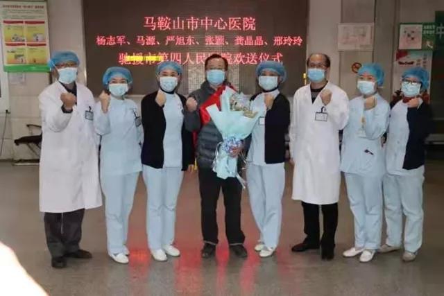 农工党马鞍山市中心医院总支主委、医院ICU主任杨志军(左四)主动请缨,于1月31日驰援市第四人民医院。