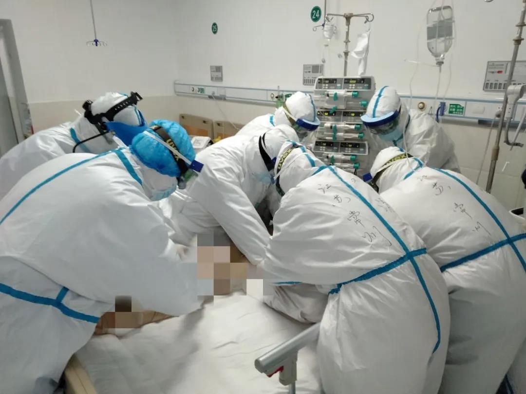 姚坚和他的团队遇到了一位气管插管上呼吸机的危重患者,呼吸机氧浓度已上到最高的100%,但患者的血氧饱和度仍不稳定。姚坚她们克服一无翻身床,二缺护理人员的困难,江苏团队的7名医护人员齐上阵一起用手把病人翻身,利用普通监护床把患者顺利实施了俯卧位通气治疗,最终患者的监护仪指标趋向稳定。