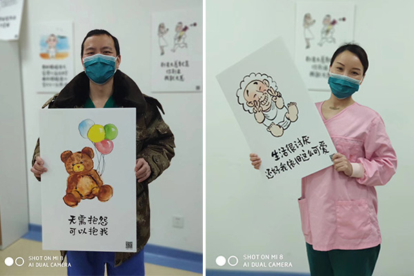 这是一份特殊的礼物,一贴治愈心灵的偏方,在这个堪称艰难的时刻,来到和漫画一样可爱的人身边,给第一线的医护人员及患者们缓解了压力,带去满满加油鼓劲的正能量。