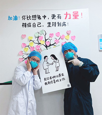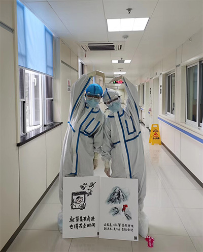 功夫不负有心人,她的申请得到了“小林漫画”团队的大力支持,当即表示将捐献一批画作。得到积极的回应后,戴雅丽老师便和战斗在一线、同为农工党员的张斌斌、洪亮主任进行了对接,他们主动接手了布展任务。当漫画终于到达目的地,看到医护人员的笑脸,戴雅丽老师开心地说:“你们和小林漫画在一起的样子,真的真的很好看!”