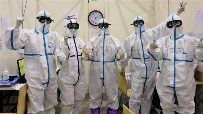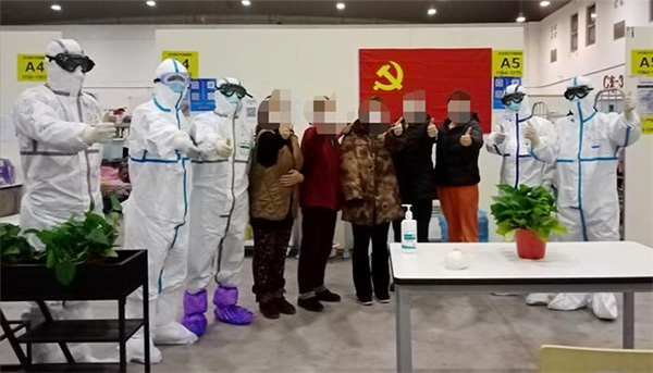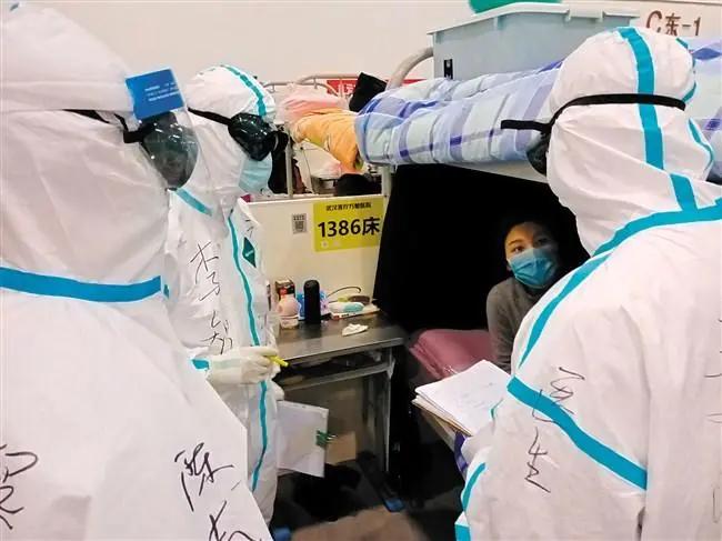 李智(左三)在方舱医院