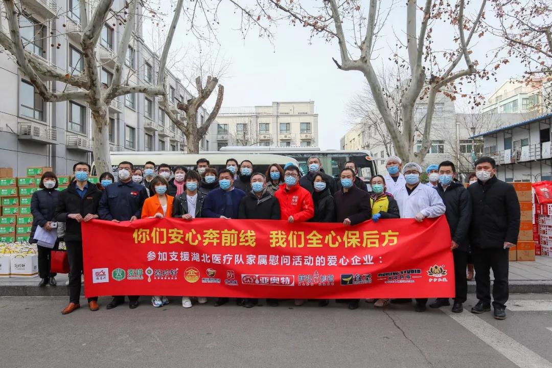 农工党党员李传涛,山东三耕餐饮管理有限公司董事长、素耕品牌创始人,一直关注山东援颚医疗队员的情况,2月16日,联合多家爱心企业为山东大学第二医院支援湖北医疗队员的家属送去了米、菜、面、奶、粮油、副食等物资。2月24日,李传涛再次联合爱心企业为山东省胸科医院奋战在一线的医护人员捐赠了营养品、护肤用品等共计12万元,希望他们能在最艰难的时候,感受到温暖,力克难关。2月25日,李传涛与农工党山东省委会领导一起走访慰问援鄂农工党党员家属,从此,与马坤一家结下了深厚的战“役”情。