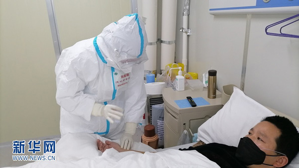 刘禹翔在雷神山医院感染三科六病区(C6)为患者号脉