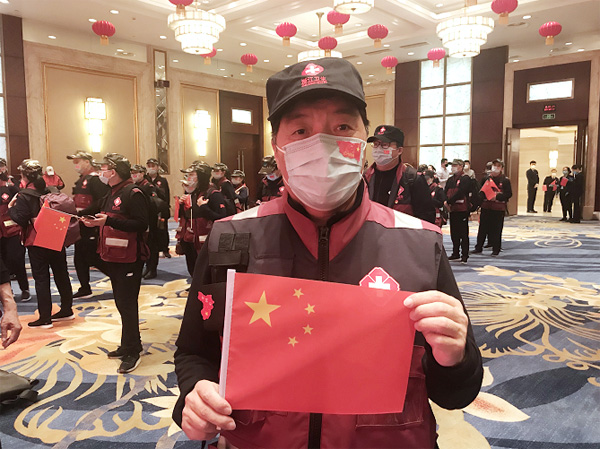 临别之际,武汉市洪山区的政府领导、志愿者和民众们手持横幅与小红旗,向圆满完成任务的“最美逆行者”们致以崇高敬意,欢送援鄂医疗队员的离开。