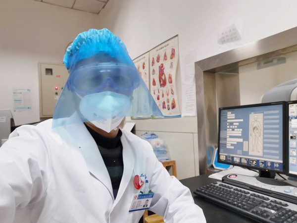 工作中,他认真负责,一丝不苟。他每天要从几十位发热患者的上万幅CT薄层图像中仔细观察,认真研判并结合患者有无发热体征、流行病学史、疫区接触史及血液检查结果等多方面来捕捉蛛丝马迹,发现并判断出疑似患者,第一时间做出正确诊断,对疑似患者及时做出预警,第一时间采取隔离措施,为全院新型冠状病毒肺炎的诊疗工作把好第一关。