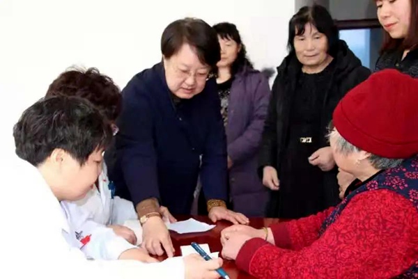 张丽丽(中)带领医生为群众进行健康体检和咨询服务