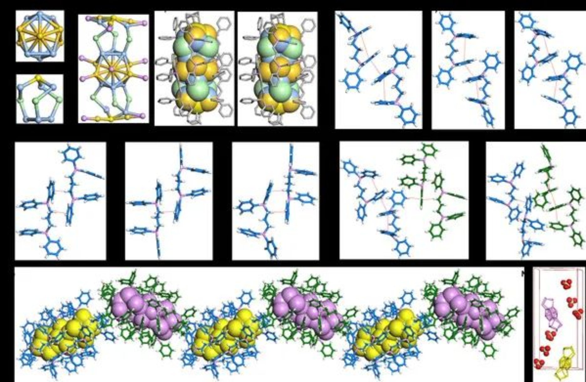 图1. Pt1Ag18的晶体结构、弱相互作用和堆积模式