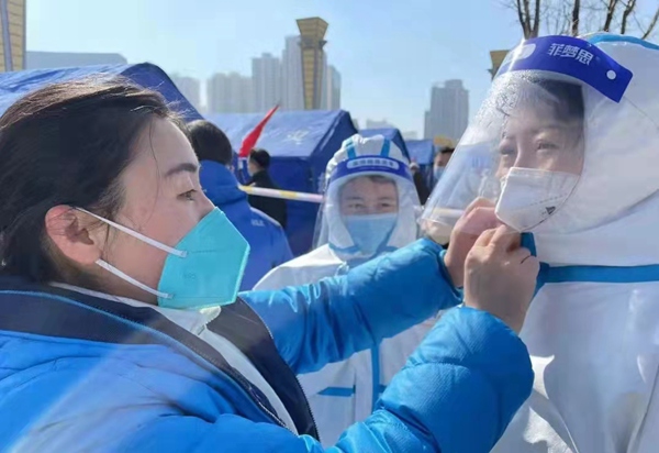 无独有偶,和马越主任一同前往一线开展核酸采样工作的农工党党员还有中医副主任医师杨彦裕同志、主治医师马晓娟同志,他们接到了医院疫情防控办的指令,第一时间赶往医院,随队出征。一张张被口罩勒出印痕的脸庞,一双双僵硬红肿的手指,一副副凝结水汽的护目镜,是你们最真实的工作写照,用坚守和付出诠释了农工党党员的责任和担当。