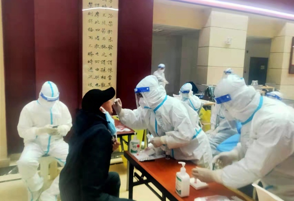 11月5日上午,医院微信群被“需要抽调医护人员组建全民核酸采样应急医疗队”这一则紧急通知打破了宁静,各科室主任紧随其后上报医疗队员。农工党青海省委会常委马越,和去年初疫情发生时一样,再一次主动请缨积极参加应急培训,并圆满完成了11月6日至9日的西宁市主城区第一、二轮全民核酸筛查工作。省医院支委会主委李英兰同志、副主委孙斌、张永刚,卓么加同志作为科室负责人均积极响应,派出科室的多名骨干参与应急工作。