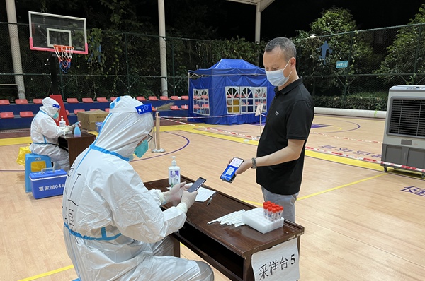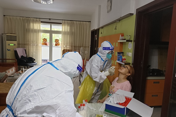 “请张开嘴巴,对,舌头再往下压……” “谢谢您的配合!”8月18日,农工党党员、沙坪坝区中医院皮肤科负责人邹伦燕接到医院安排后,穿梭在封控小区各楼栋,逐户上门为居民采集核酸。