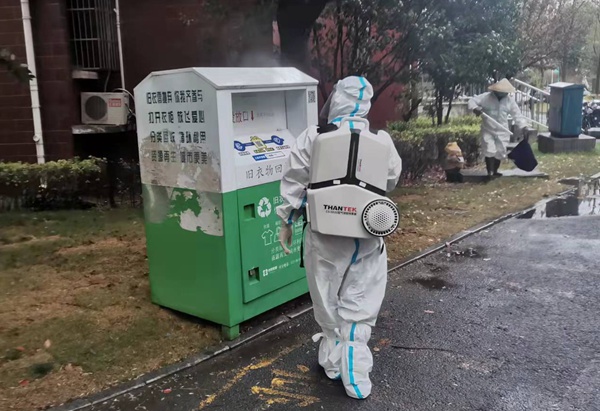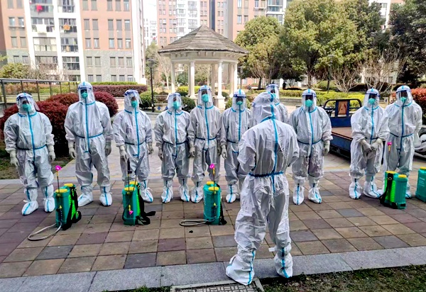 江宁区政府为守护好管控区居民及工作人员的身体健康和生命安全,高度重视新冠肺炎的消杀工作。因此,一支由江宁区城管局、江宁环卫集团工作人员组成的应急救援志愿服务队应“疫”而生。主要工作是对管控区内楼道、公共设施、垃圾箱房及卫生死角等地方进行全面消毒,确保消毒消杀工作全覆盖、零死角、无缝隙。
