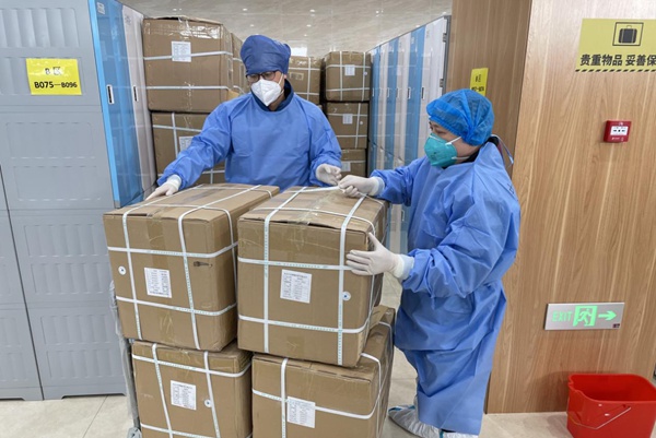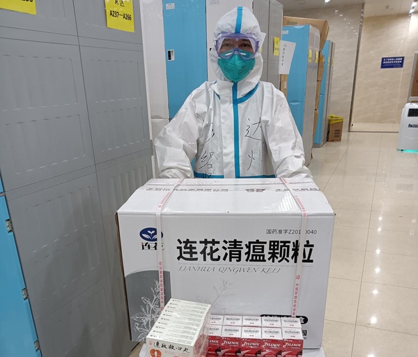 前两天,多个驻地相继“沦陷”,多位舱内工作药师也被隔离,上班人员严重不足,影响了正常值班,在这紧要关头,舱内药师发扬团结协作、攻坚克难、不怕苦不怕累的精神。采取一人干两人活儿,上班时间从4-6小时延长至9-12小时,抓重点、保基本,优先满足急需药品、抢救药品、较重患者、特殊患者的药品配送。全天共为965名患者,每人配送莲花清瘟颗粒三盒,外加个体化治疗用药,共发送三千余盒,搬运入库物资近2吨!