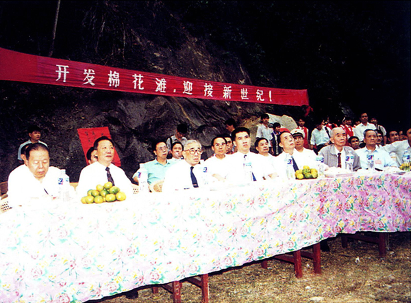 1994年10月13日,卢嘉锡(前排左三)视察棉花滩并在座谈会上讲话