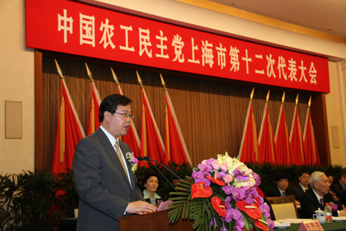 中共上海市委常委、市委统战部部长杨晓渡宣读中共上海市委的贺信