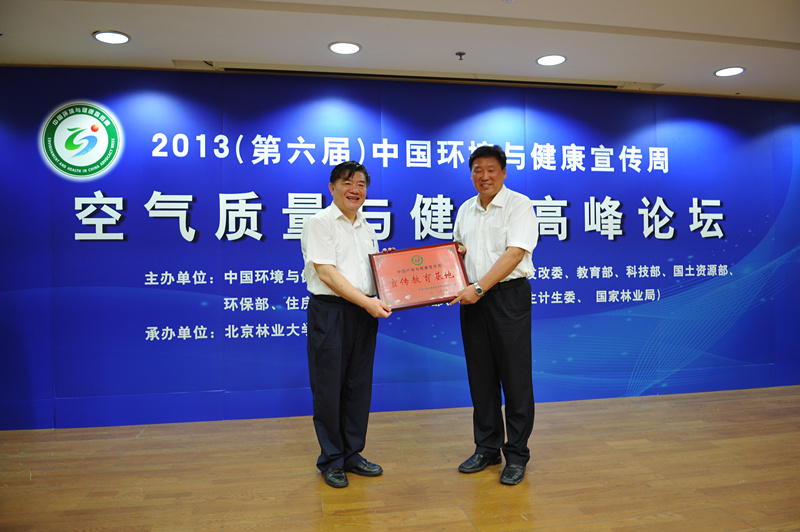 2013年7月30日上午,2013(第六届)中国环境与健康宣传周“空气质量与健康”高峰论坛在北京林业大学成功举办。全国人大常委会副委员长、农工党中央主席、国环境与健康宣传周领导小组组长陈竺出席并致辞。