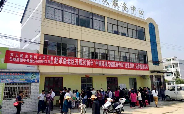 2016年6月4日,农工武汉市洪山区工委组织党员赶赴革命老区——团风县杜皮乡叶家冲村,为当地老百姓送医送药、义诊咨询与法律援助。区工委主委陆继红亲自带队参加活动。