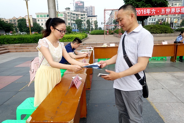 2016年6月5日,农工党泸州市泸县支部组织党员联合县环保局等单位在县城音乐广场开展第九届“中国环境与健康宣传周”活动。
