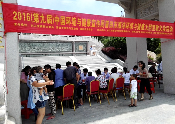 2016年6月15日、16日,农工党莆田市委会联合莆田市海洋渔业局、湄洲岛管委会,在妈祖故里湄洲岛举办2016年(第九届)中国环境与健康宣传周大型宣教义诊活动。