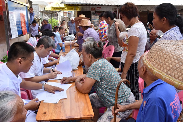 6月7日,农工党三亚市委会在西岛社区举行帮扶义诊活动,来自农垦三亚医院、市人民医院和市中医院,以治疗心脑血管、老年性骨关节病为主的8位临床医学专家,为社区患病老人免费诊治及中医针灸等治疗。活动共诊治病患近百名,发放价值三千多元的药品。同时,工作人员现场群众发放《海洋环境与健康》宣传册,邀请群众填写关于海葬的调查问卷。本次义诊既是“2016年中国环境与健康宣传周”系列活动之一,也是农工党三亚市委会开展的一次精准医疗扶贫活动。
