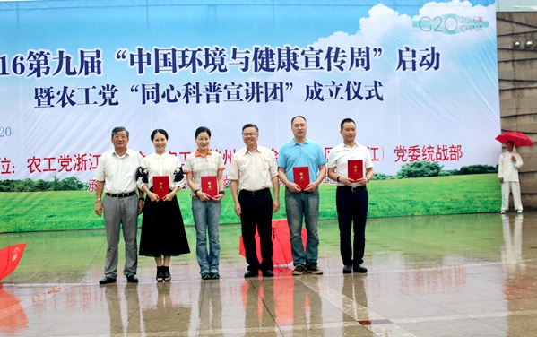 2016年6月12日上午,农工党浙江省委会联合中共滨江高新区委统战部、杭州市委会、杭州市滨江总支,在杭州市滨江区群星大舞台举行第九届“中国环境与健康宣传周”启动暨农工党浙江省“同心科普宣讲团”成立仪式。农工党浙江省委会副主委、浙江大学副校长罗建红出席仪式。