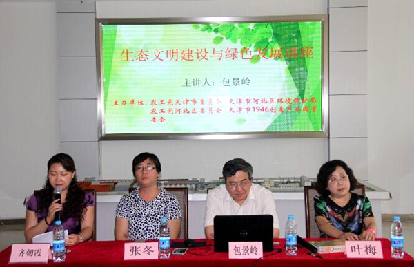 2016年6月8日下午,农工党天津市委会、农工党天津市河北区委会和河北区环保局,在天津市“1946创意产业园”会议室,联合举办了第九届“中国环境与健康宣传周”讲座。农工党天津市委会副主委、 天津市环保局原总工程师包景岭出席活动,并作了题为“生态建设绿色发展”的讲座。