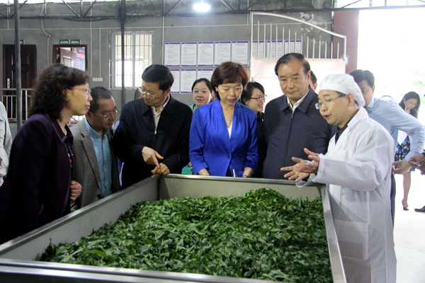与会领导及省中医药科学院的专家还到中江县通济镇桑叶茶生产基地视察,详细了解桑叶茶生产流程,对生产环节和工序进行了指导,对新鲜桑叶的运输和桑叶茶的储存情况进行了询问。