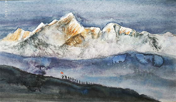 宓风光 浙江 跟着共产党走才是正道 国画