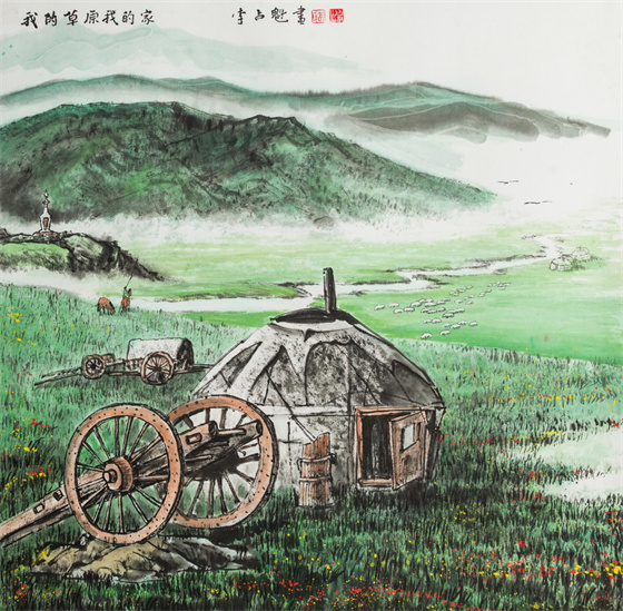 李占魁 吉林 我的草原我的家 国画