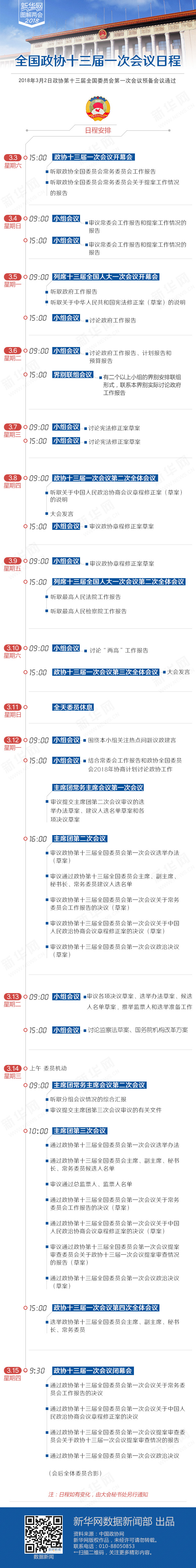 全国政协十三届一次会议日程