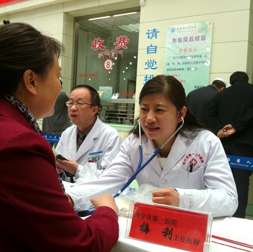 梅利主任虽然肩负科研、临床、教学等多项重任,她带领西宁市第一人民医院老年病科同事积极参与“爱心工程”公益活动,深入到青海省各州县,为当地医生做培训,给患者讲解保健常识。