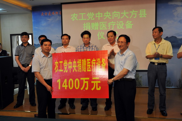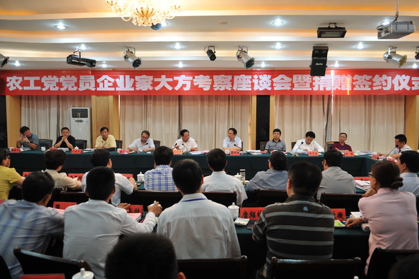 2013年6月15日下午,农工党党员企业家大方考察座谈会暨捐赠签约仪式在贵州省大方县举行。全国政协副主席、农工党中央常务副主席刘晓峰出席并讲话,全国人大环资委副主任委员、农工党中央副主席龚建明主持座谈会。农工党中央副主席、贵州省人大副主任、农工党贵州省委会主委谢庆生出席并讲话。