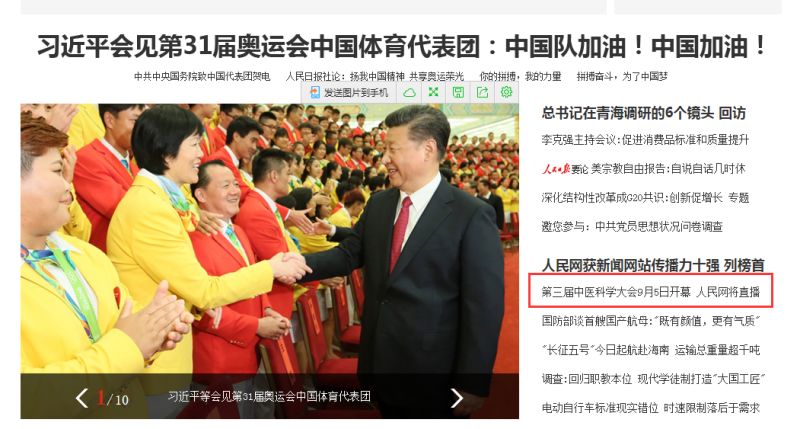 8月26日,人民网正式在首页A区推出《第三届中医科学大会9月5日开幕 人民网将直播》的新闻消息,紧接着就被新浪网、新华网、搜狐网、凤凰网、腾讯网、中国网等各大门户网站纷纷进行转载。