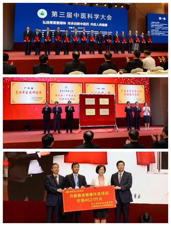 此外,会上还举行了有关签约项目文本交换仪式,“广东省中医药文化宣传教育基地”、“广东省葛洪中医药研究院”、“广州中医药大学博士后(中医养生)创新实践基地”、“世界长寿之乡”等揭牌仪式,中国初级卫生保健基金会精准健康扶贫捐赠仪式,大型纪录片《国药探秘》新闻发布会暨首批专家受聘仪式等活动。