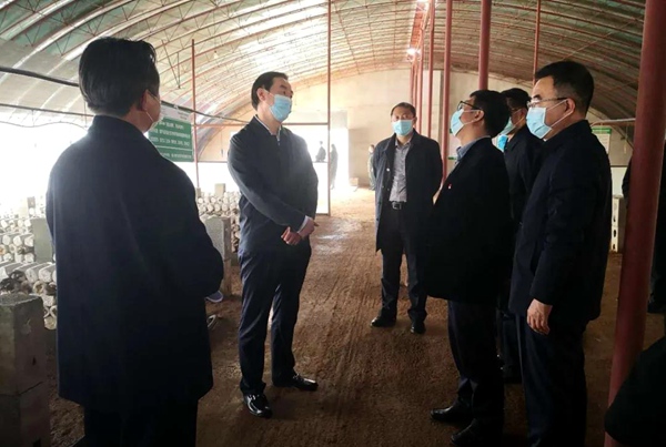 杨关林(左二)在调研中