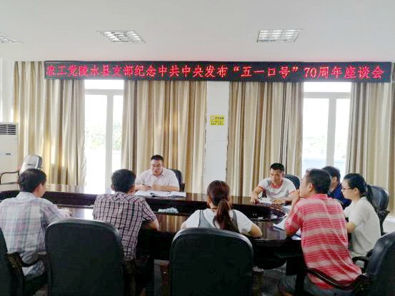 2018年4月30日,农工党陵水县支部王强主委组织全体党员召开座谈会,纪念中共中央发布“五一口号”70周年。
