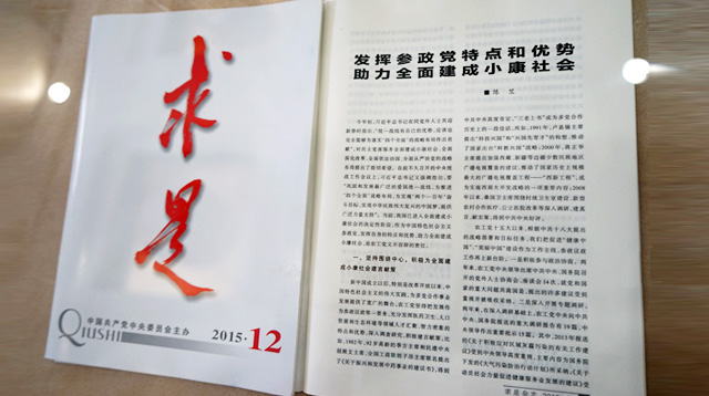 陈竺在《求是》杂志上发表署名文章《发挥参政党特点和优势 助力全面建成小康社会》