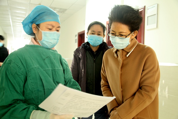 她首先组织召开分管部门工作会议,要求大家要有政治站位,政治高度,政治觉悟,国难当头,要挺身而出,以大局为重,要团结一心,众志成城,听指挥战疫情,共渡难关!强调疫情防控工作既要严格管控,又要注重人文关怀,力求做到严而有序、严而有情,忙而不乱。从此,她每天到门诊详细核实发热预检门诊、发热筛查门诊人员岗位设置、人员调配、筛查流程是否符合要求;安排门诊主任组织相关人员参加医院新型冠状病毒肺炎防控相关知识培训,要求务必熟悉掌握各种工作流程,工作要做实做细,不出纰漏。白天多次盯在门诊,和大家一起协助分散就诊人员,疏通通道,引领正确就诊路径。