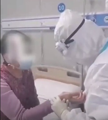 这名病人姓罗,今年65岁,是2月29日第一批进入雷神山医院六病区的重症病人,经过深圳医生的精心治疗,逐渐康复。和她同房的是一名危重病人,80多岁,身体不能行动。从进入六病区第一天开始,罗女士就一直用手机拍摄记录深圳分队医生刘禹翔、刘磊以及护士彭思萍等人救治临床病友的过程。