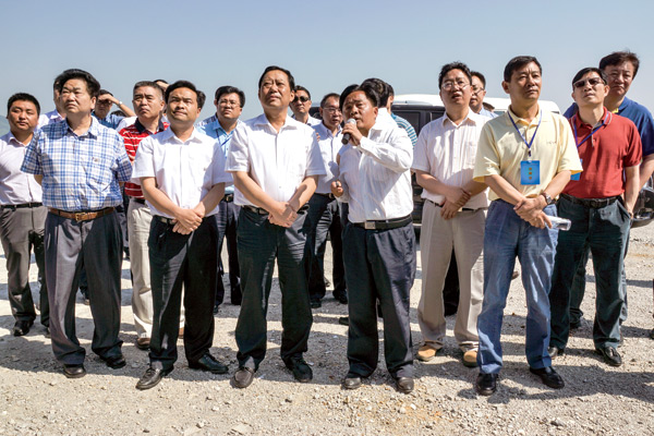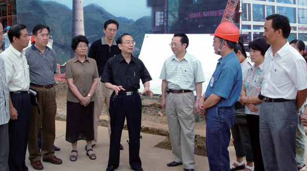 2005年8月,时任全国人大常委会副委员长、农工党中央主席蒋正华(前排左四)等考察大方火电厂