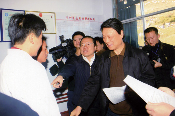 2013年4月16日,全国人大常委会副委员长、农工党中央主席陈竺在大方县八堡乡调研。