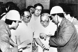 1993年,卢嘉锡在包头稀土企业集团了解稀土综合利用情况。