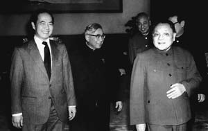 1983年,卢嘉锡同志陪同邓小平同志会见美籍物理学家、诺贝尔奖获得者李政道博士。