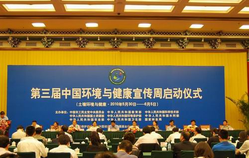 5月30日,第三届“中国环境与健康宣传周”在京启动。全国政协副主席、农工党中央常务副主席陈宗兴,全国人大常委、环资委副主任、农工党中央副主席汪纪戎,国土资源部党组成员、副部长贠小苏,卫生部党组成员、副部长陈啸宏,水利部党组成员、办公厅主任陈小江,以及教育部党组成员、副部长陈小娅的代表—教育部基础教育司司长高洪,环境保护部副部长吴晓青的代表—环境保护部总工程师万本太,农业部副部长张桃林的代表—农业部科技教育司巡视员王衍亮,中央纪委驻国家林业局纪检组组长、国家林业局党组成员陈述贤的代表—国家林业局宣传办公室副秘书长柳维河,“宣传周”活动领导小组秘书长、农工党中央秘书长陈建国等主办单位领导与代表出席了仪式。