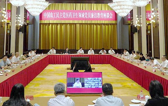7月28日,农工党医药卫生领域党员廉洁教育座谈会以线上线下相结合的方式召开,何维主席出席会议并讲话,杨震常务副主席出席会议,邓蓉玲副主席兼秘书长主持会议。